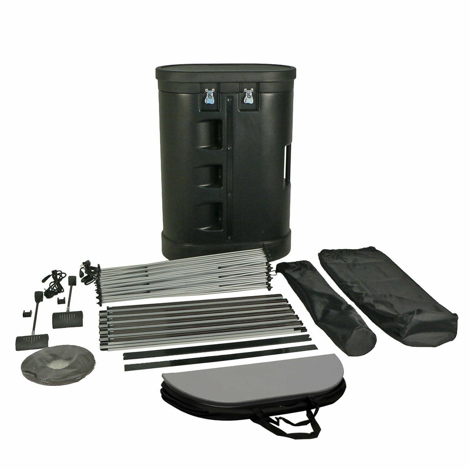 De gebogen pop-up beurswand wordt geleverd met een verrijdbare trolley, waardoor u deze makkelijk kunt vervoeren naar uw volgende evenement of beurs. Verder zijn er verschillende accessoires verkrijgbaar, waaronder LED-verlichting voor een optimale zichtbaarheid.