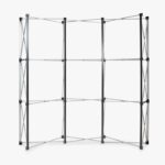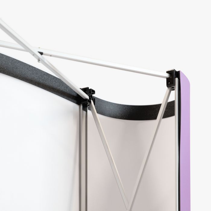 Elke pop-up wand is zorgvuldig afgewerkt met een ophangprofiel en magneetstrips. Dit zorgt voor een snelle en eenvoudige montage, waarbij het doek moeiteloos op zijn plaats blijft en een strakke presentatie biedt zonder te plooien of te kreuken.