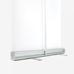De Budget Roll-up banner is ontworpen om een aantal keer te gebruiken. De cassette is uitgerust met twee uitschuifbare voeten. De cassette is verkrijgbaar in zilver aluminium of zwart. Verder kunt u kiezen uit verschillende formaten: 85 cm x 200 cm, 100 cm x 200 cm of 120 cm x 200 cm. Bovendien bieden we een breed scala aan materialen voor uw Budget Roll-up banner: